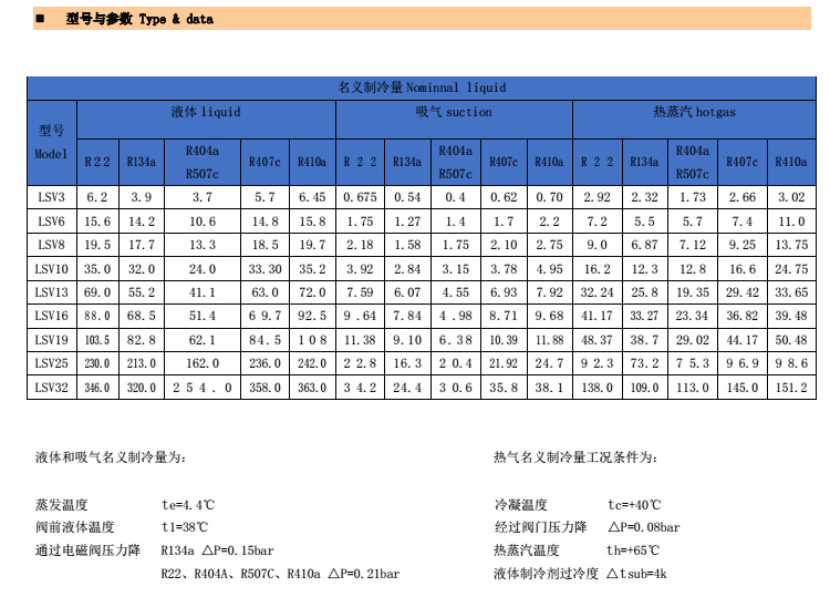 适用(yòng)介質:R134a,R22,R407C,R404A/507, 空'→(kōng)氣,水(shuǐ)和(hé)黏♥σ<度≦4E 機(jī)油