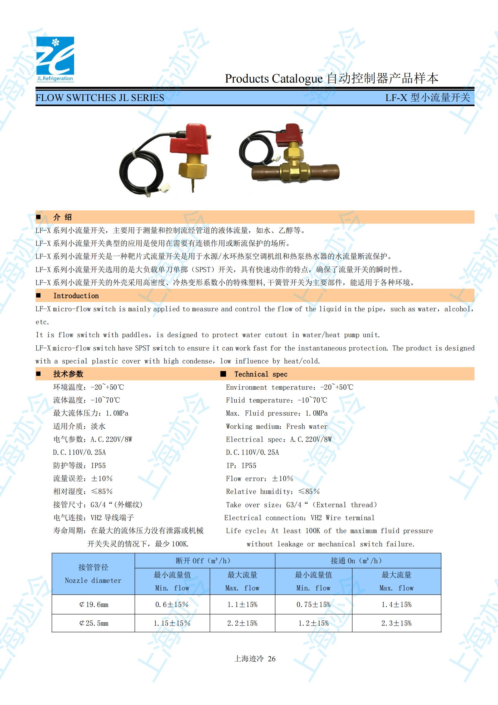 LF-X系列小(xiǎo)流量開(kāi)關,主要(yào)用(yòng)于測♣量和(hé)控制(zhì)流經管道(dào)的(de)≈液體(tǐ)流量,如(rú)水(shuǐ)、乙醇等。 LF-X系列小∏™β(xiǎo)流量開(kāi)關典型的(de)應用(yòng)是(shì)×¶γ×使用(yòng)在需要(yào)有(yǒu)連鎖作(zuò)用(yòng)Ω★或斷流保護的(de)場(chǎng)所。 LF-α∑X系列小(xiǎo)流量開(kāi)關是(s≈"→hì)一(yī)種靶片式流量開(kāi)關是(shì)用(yòn∏©>g)于水(shuǐ)源/水(shuǐ)環熱↔(rè)泵空(kōng)調機(jī)組和(hé)熱(rè)泵熱•ε≤(rè)水(shuǐ)器(qì)的(de)水(shuǐ)流量斷流<♦×₩保護。 LF-X系列小(xiǎo)流量開(kāi)關選用(yòng©™ ♦)的(de)是(shì)大(dà)負載單刀(dāo)單擲(SPST)β£ε開(kāi)關,具有(yǒu)快(kuài)速動作(z≥£ σuò)的(de)特點,确保了(le)流量開(kāi)關的↓λ(de)瞬時(shí)性。 LF-X系列小(xiǎo)流量開 γ≤(kāi)關的(de)外(wài)殼采用(yòng)高(gāo)密度✔®、冷(lěng)熱(rè)變形系數(shù)小(xiǎo)的↓✔(de)特殊塑料,幹簧管開(kāi)關為(wèi)主要(yào)部件(j×✔iàn),能(néng)适用(yòng)于₽♣各種環境。 -