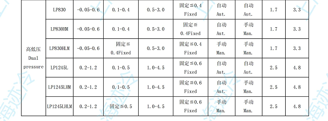 LP系列壓力控制(zhì)器(qì)用(yòng<"♣)于保護制(zhì)冷(lěng)或空(kōng)調裝置的(de)壓縮機(jīγ ),使之免于吸氣壓力過低(dī)或排氣壓力過高(g "™āo)。 LP系列壓力控制(zhì)器(qì)也(yě)可(σ£kě)用(yòng)于停止壓縮機(jī)及空(∑✔®kōng)氣冷(lěng)凝器(qì)的(de)風(fēng)扇§₽。 LP系列壓力控制(zhì)器(qì)還(hái)可(kě)以">δ用(yòng)于水(shuǐ)泵,消防,鍋爐,液壓,熨燙,真空→↕♠(kōng)等設備。 LP系列壓力控制(zhì)器(qì)有σ∑(yǒu)單刀(dāo)雙擲(SPDT)單刀(dāo)'雙擲(DPST)雙刀(dāo)雙擲(DPDT)三種形式的(¥¥γ de)切換開(kāi)關,動作(zuò)值可(kě)根→£ 據需要(yào)的(de)壓力來(lái)确定。 LP系列壓力控制(zhì)☆σλ器(qì)配有(yǒu)銅質氣箱接頭,用(y €÷òng)于氨利昂制(zhì)冷(lěng)劑系統,也(yě☆∏✘)可(kě)以配不(bù)鏽鋼材質氣箱接頭,可(kě)滿足液氨等帶腐蝕性®&氣體(tǐ)或液壓系統。 LP系列壓力控制(zhì)器(q>€ì)靈巧的(de)微(wēi)動開(kāi)關結構确保了(le"σ)可(kě)靠的(de)快(kuài)速轉換功能(néng)。 LP系列壓™♣ ₽力控制(zhì)器(qì)認證:CE認證 -